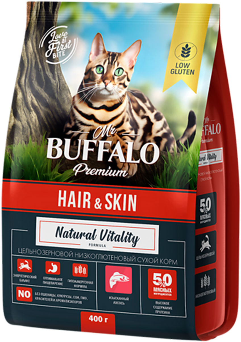 Сухой корм для кошек MR.BUFFALO ADULT HAIR & SKIN с чувствительной кожей и шерстью лосось (0,4 кг)