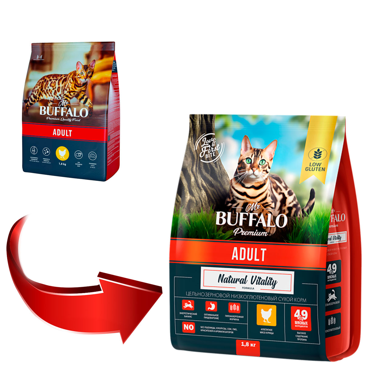 Mr. Buffalo специально разработан для удовлетворения энергетических потребностей взрослых кошек от 1 года. Изготовлен из высококачественных, легкопереваримых ингредиентов, имеет в составе высокий уровень антиоксидантов и витаминов.
