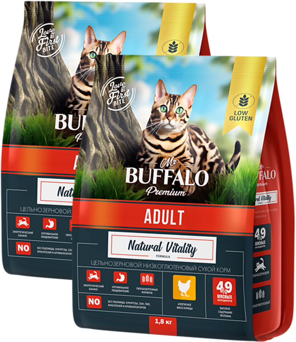 Сухой корм для кошек MR.BUFFALO ADULT курица (1,8 + 1,8 кг)
