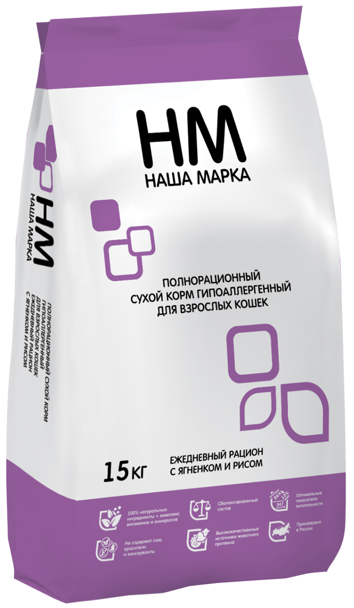Сухой корм для кошек НАША МАРКА гипоаллергенный ягненок, рис (15 кг)