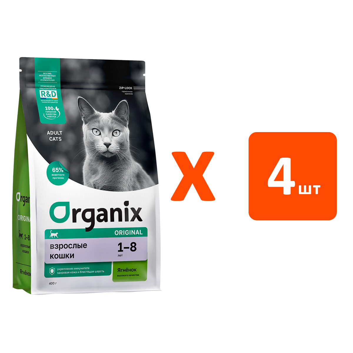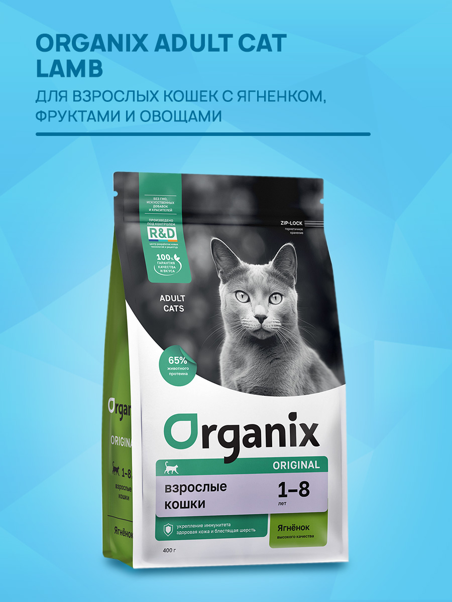 Сухой корм для кошек ORGANIX ADULT CAT LAMB ягненок, фрукты, овощи (0,4 кг х 4 шт)