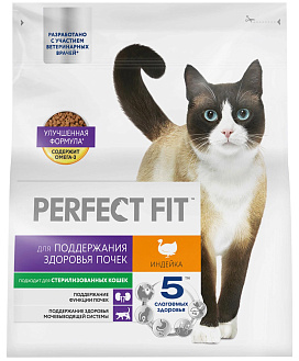 Сухой рацион PERFECT FIT "Здоровье почек" для взрослых кошек с индейкой разработан специально для поддержания здоровья почек кошек.