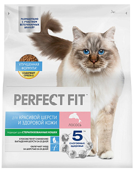 Рацион PERFECT FIT HAIR & SKIN с лососем разработан специально для поддержания здоровья кожи и красоты шерсти кошки.