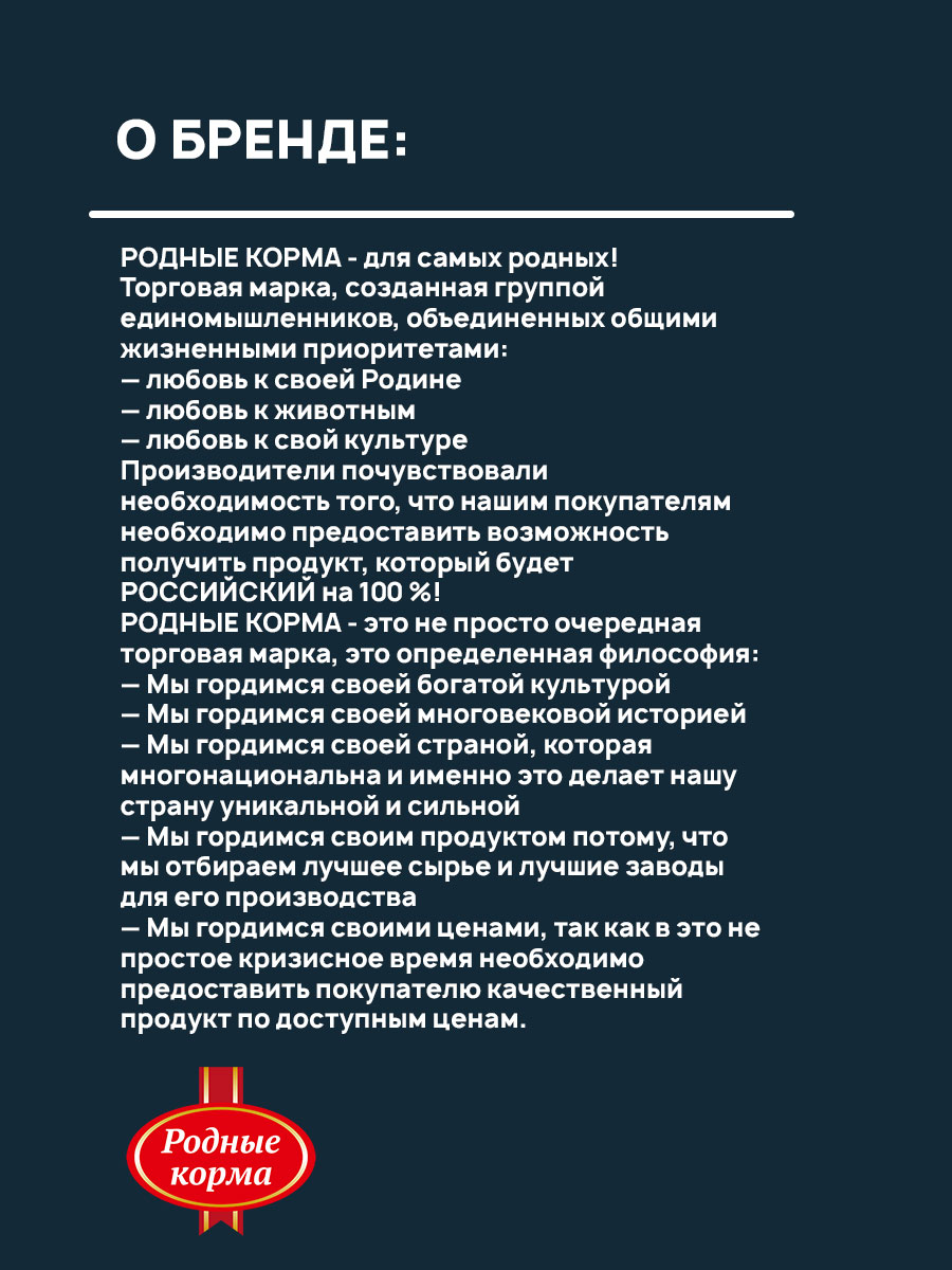 «РОДНЫЕ КОРМА» — это гарантия качества и забота о здоровье Вашего любимца.