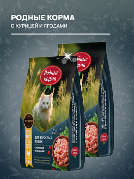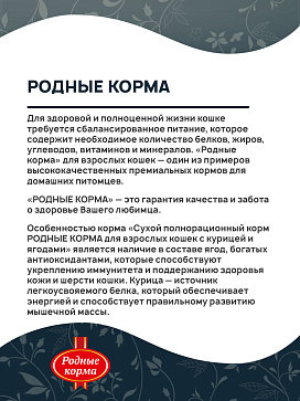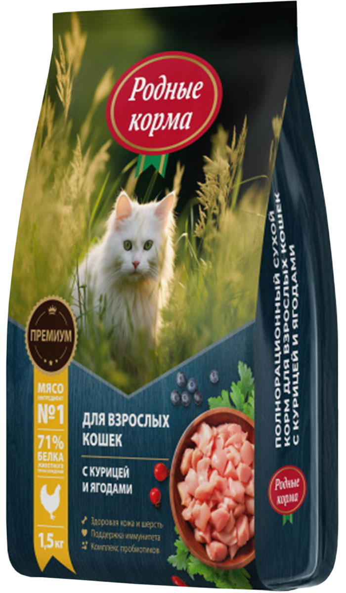 Сухой корм для кошек РОДНЫЕ КОРМА курица, ягоды (1,5 кг)