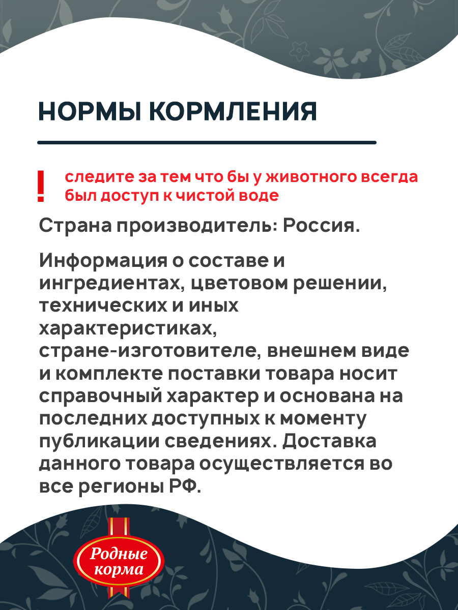 РОДНЫЕ КОРМА — это гарантия качества и забота о здоровье Вашего любимца.