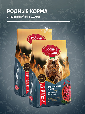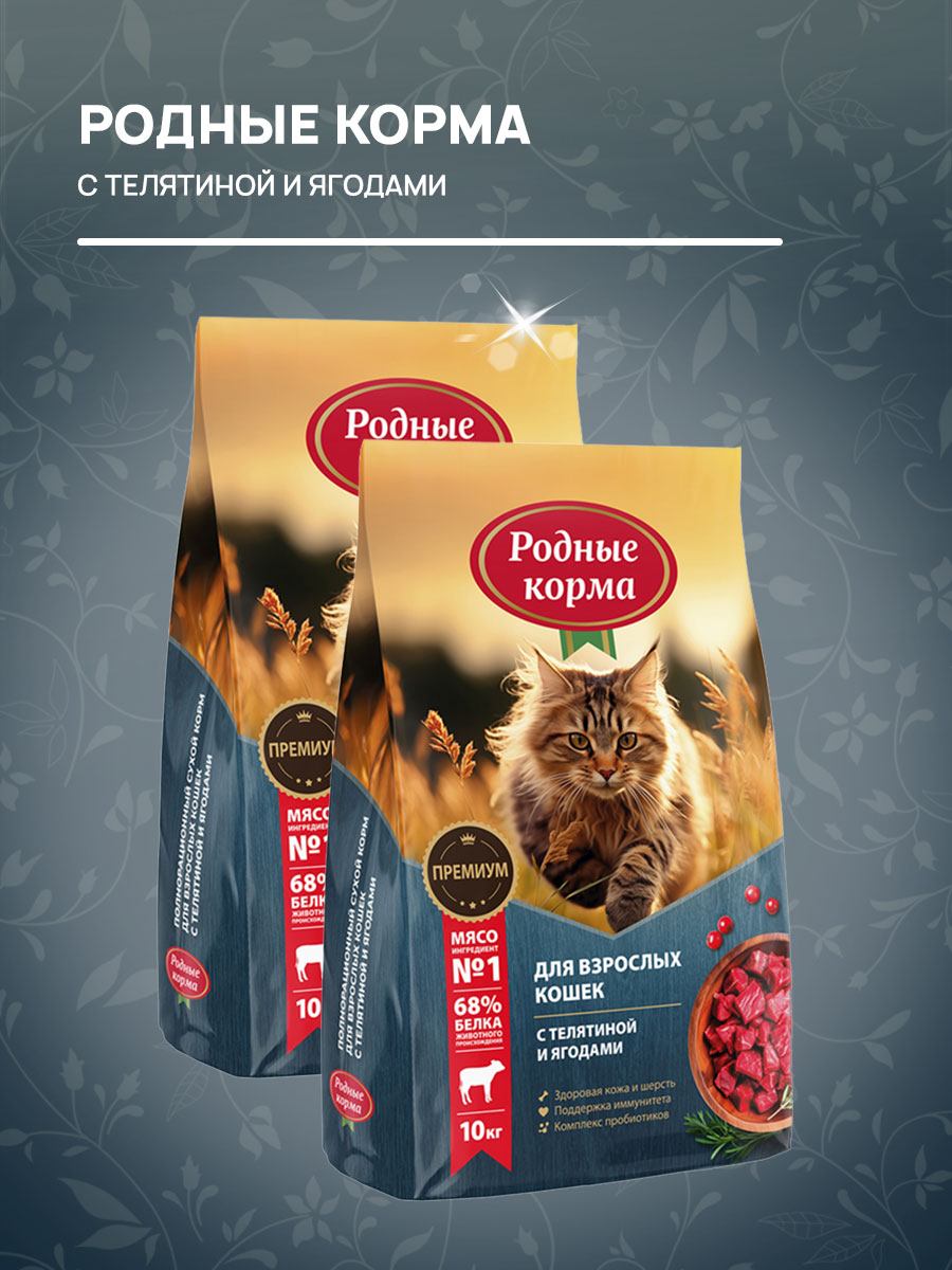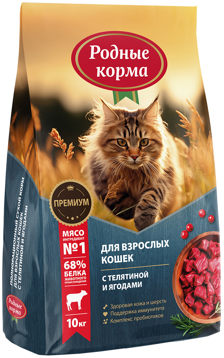 Сухой корм для кошек РОДНЫЕ КОРМА телятина, ягоды (10 кг)