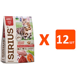 Сухой корм для кошек SIRIUS мясной рацион (0,4 кг х 12 шт)