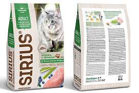 SIRIUS — сухой корм премиум-класса для полноценного ежедневного питания взрослых кошек с чувствительным пищеварением.
