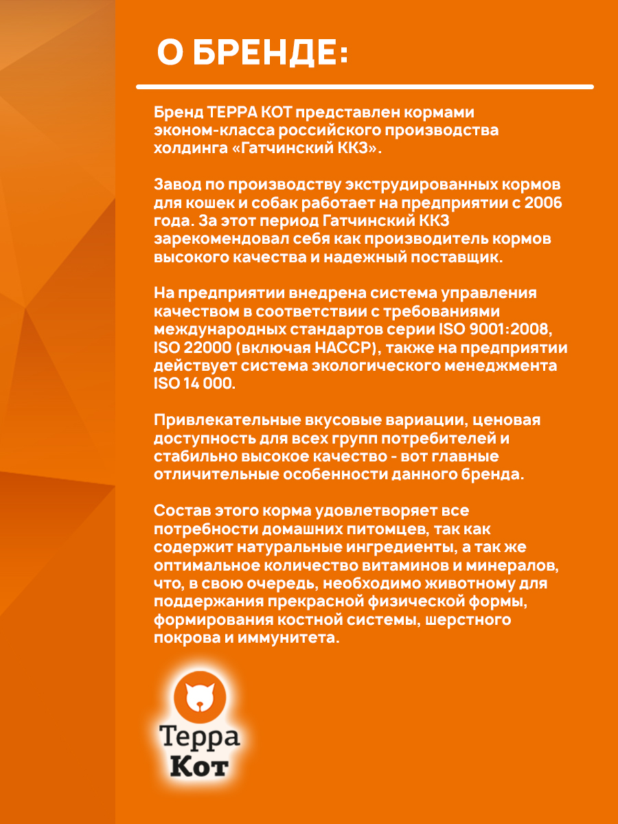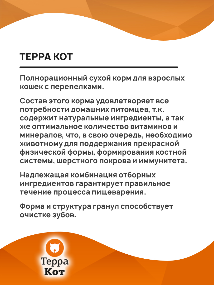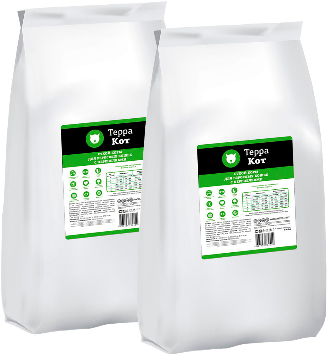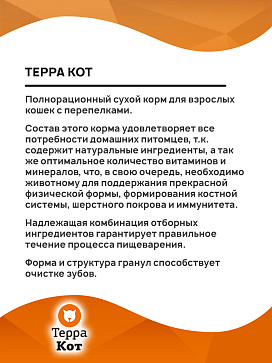 Сухой корм для кошек ТЕРРА КОТ перепелка (10 + 10 кг)