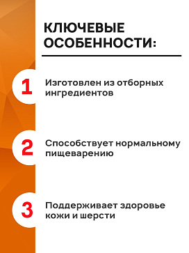 - Поддерживает здоровье кожи и шерсти.