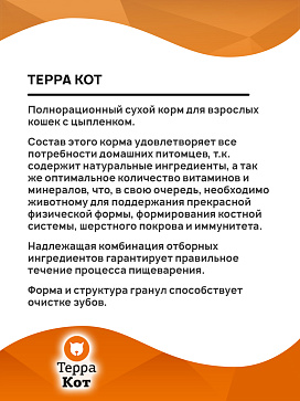 Сухой корм для кошек ТЕРРА КОТ цыпленок (10 кг)