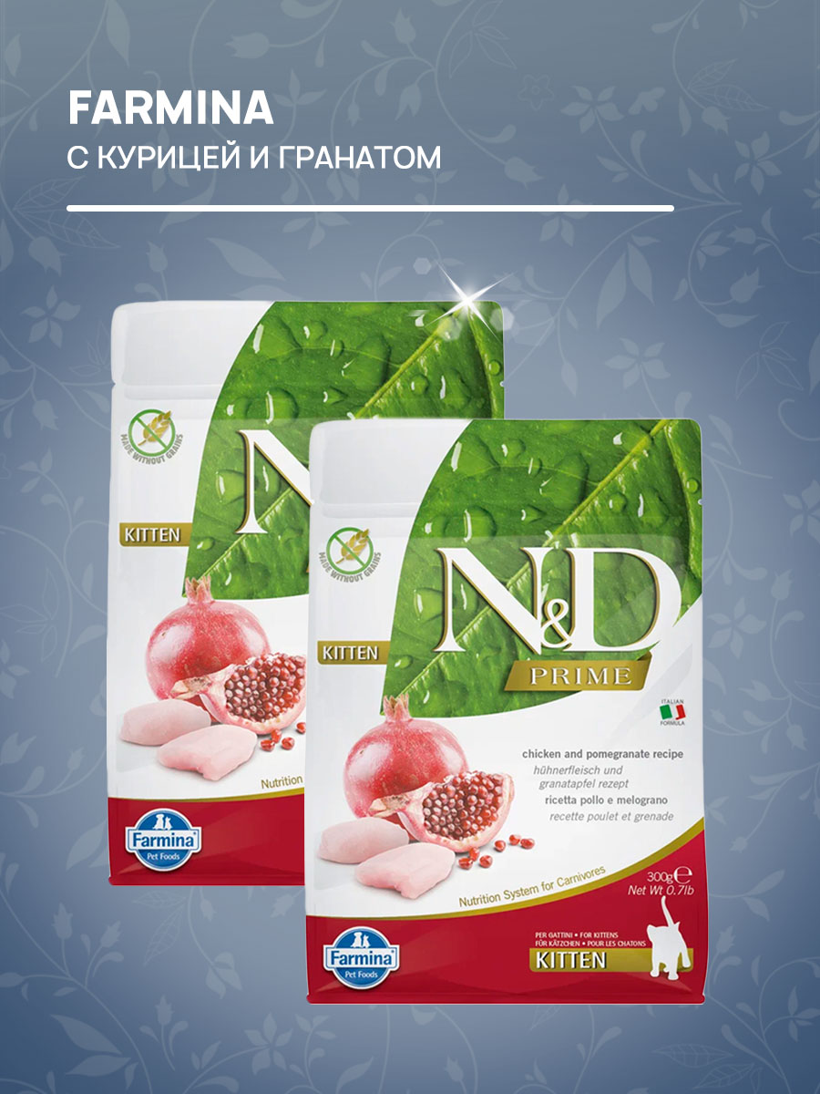 Сухой корм для котят FARMINA N&D PRIME KITTEN беззерновой курица, гранат (0,3 + 0,3 кг)