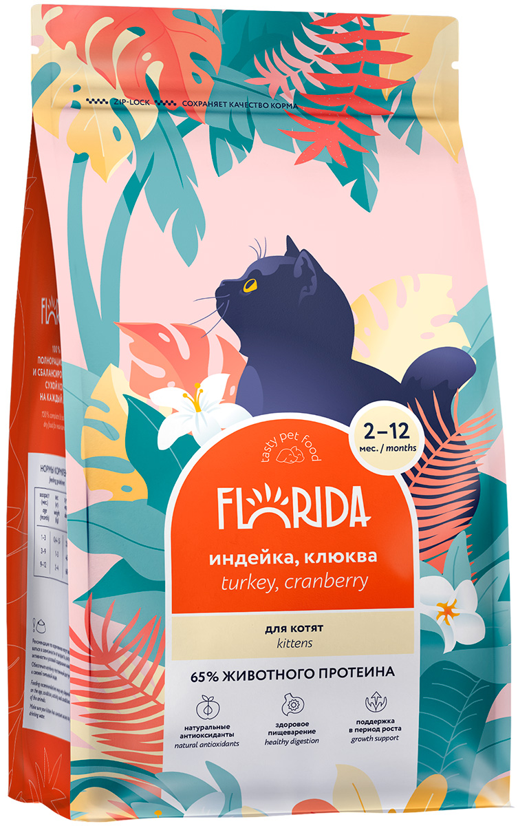 FLORIDA - сухой корм супер-премиум класса с индейкой и клюквой для котят с 2 до 12 месяцев.