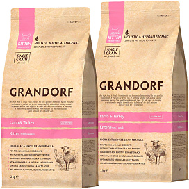 Сухой корм для котят GRANDORF SINGLE GRAIN KITTEN LAMB & TURKEY низкозерновой ягненок, индейка (2 + 2 кг)