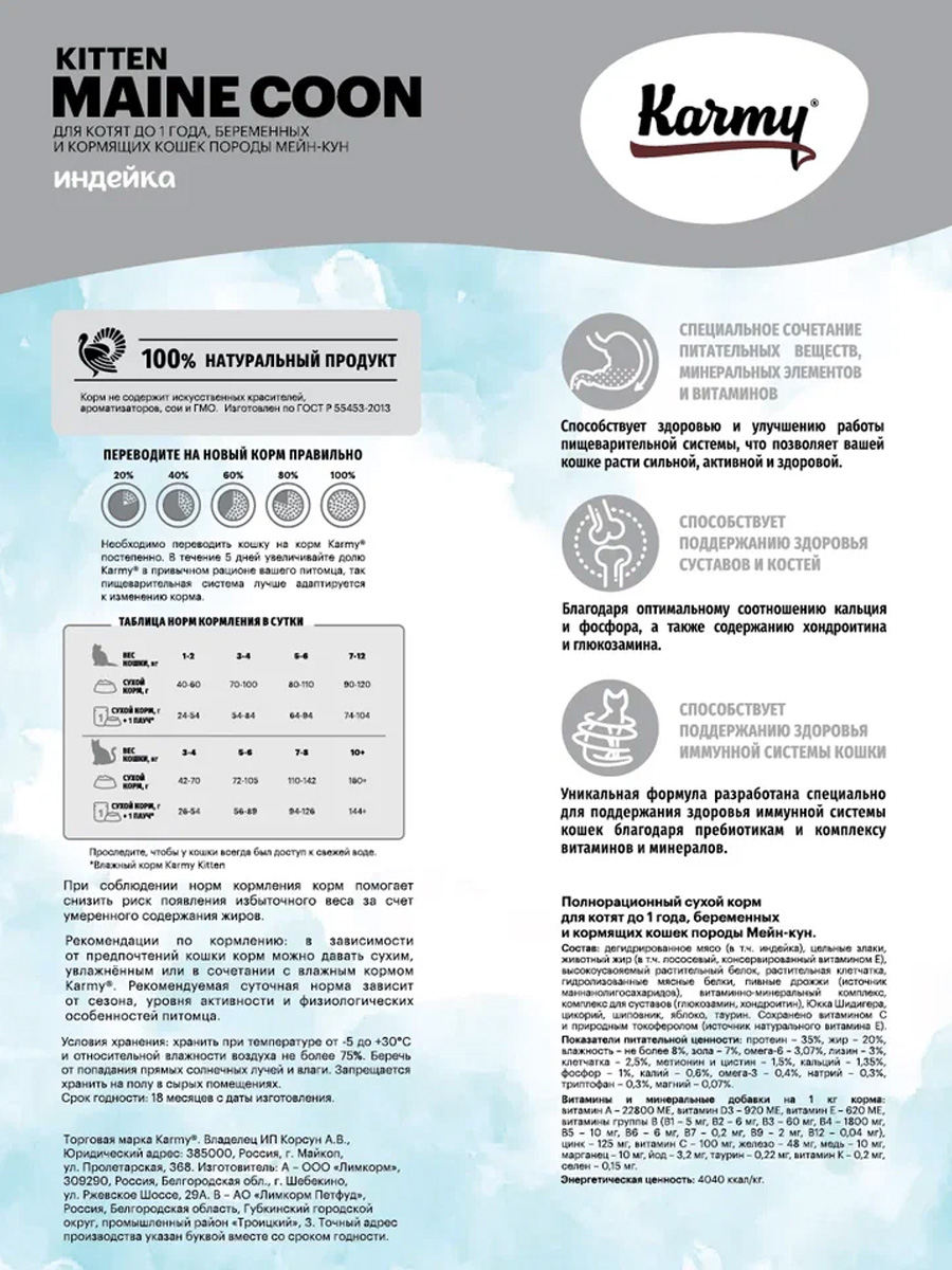 Сухой корм для котят KARMY MAINE COON KITTEN индейка (10 + 10 кг)