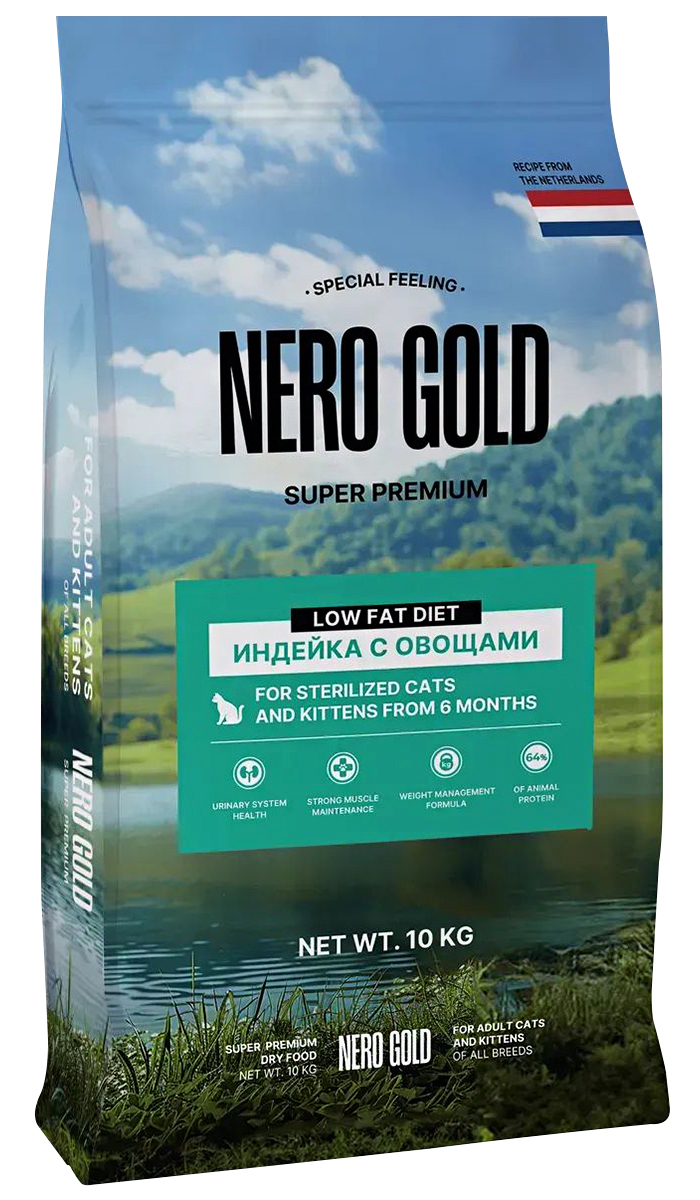 Сухой корм для котят, кастрированных котов и стерилизованных кошек NERO GOLD SUPER PREMIUM индейка, овощи (10 кг)