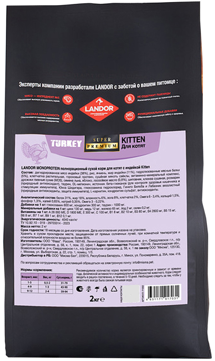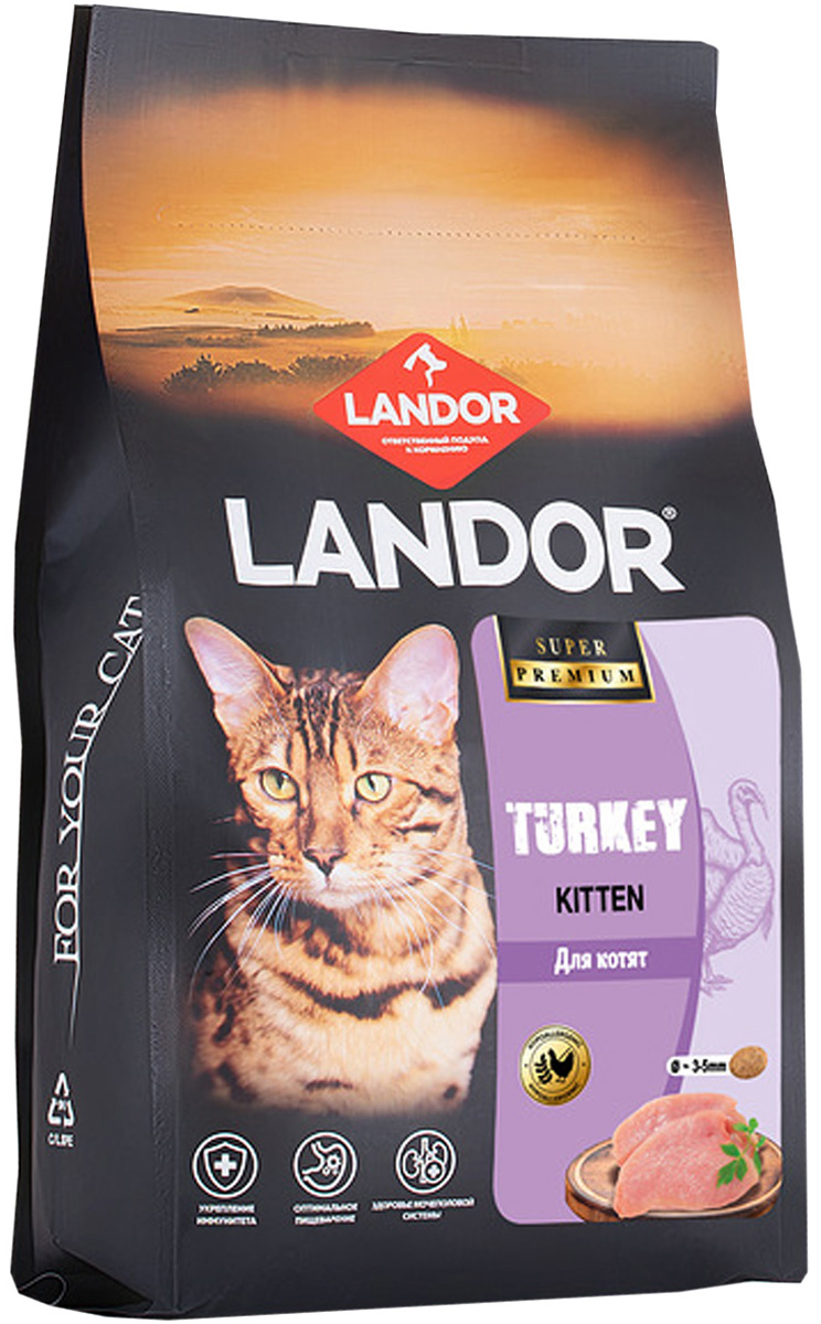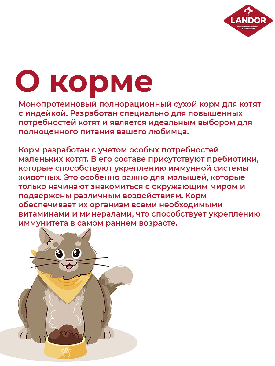 Сухой корм для котят LANDOR MONOPROTEIN TURKEY индейка (2 + 2 кг)