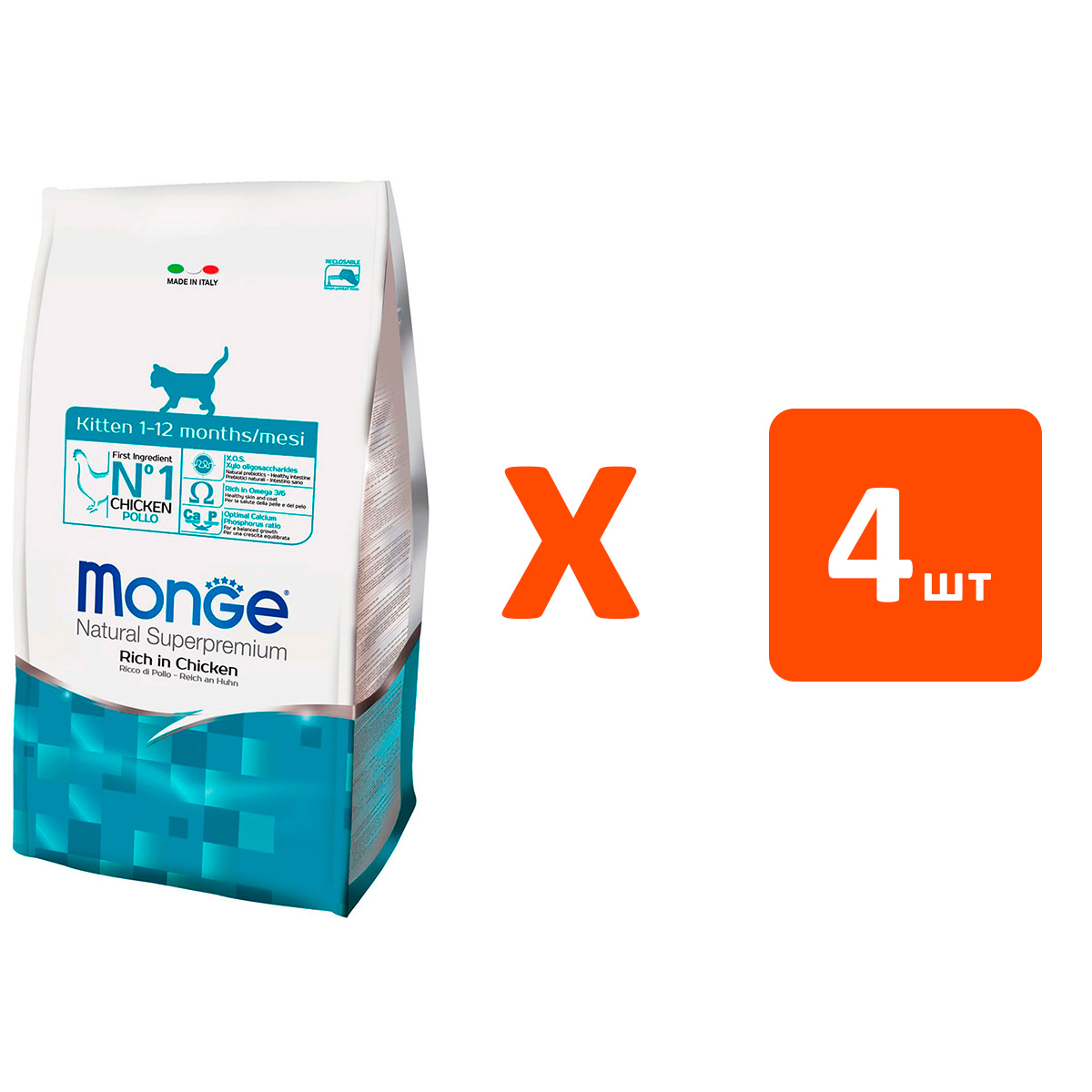Сухой корм для котят MONGE KITTEN курица (1,5 кг х 4 шт)