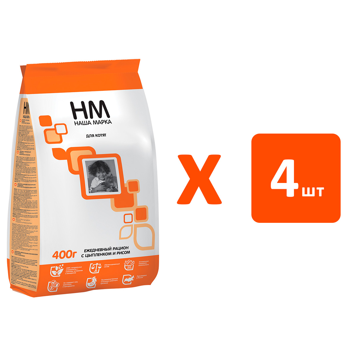 Сухой корм для котят НАША МАРКА цыпленок, рис (0,4 кг х 4 шт)