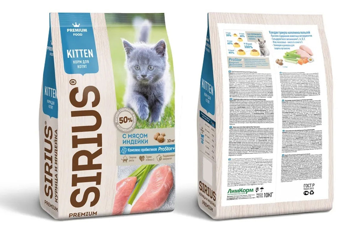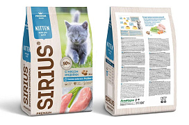 SIRIUS — сухой корм премиум-класса для полноценного ежедневного рациона котят с 1-2-х месяцев до 1 года.