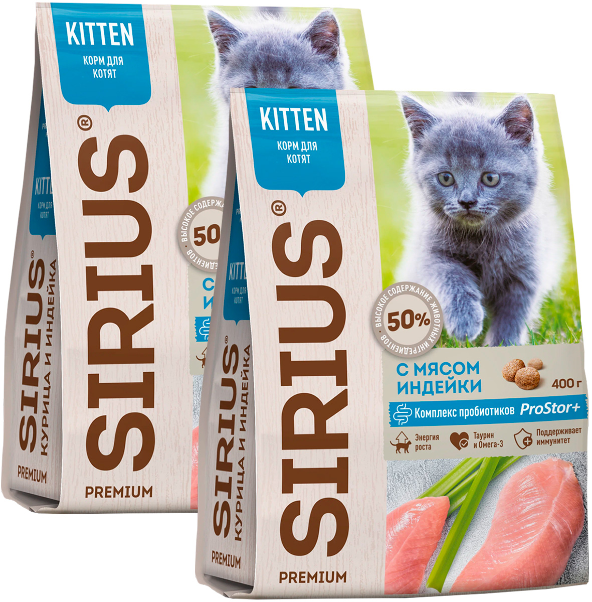 Сухой корм для котят SIRIUS индейка (0,4 + 0,4 кг)
