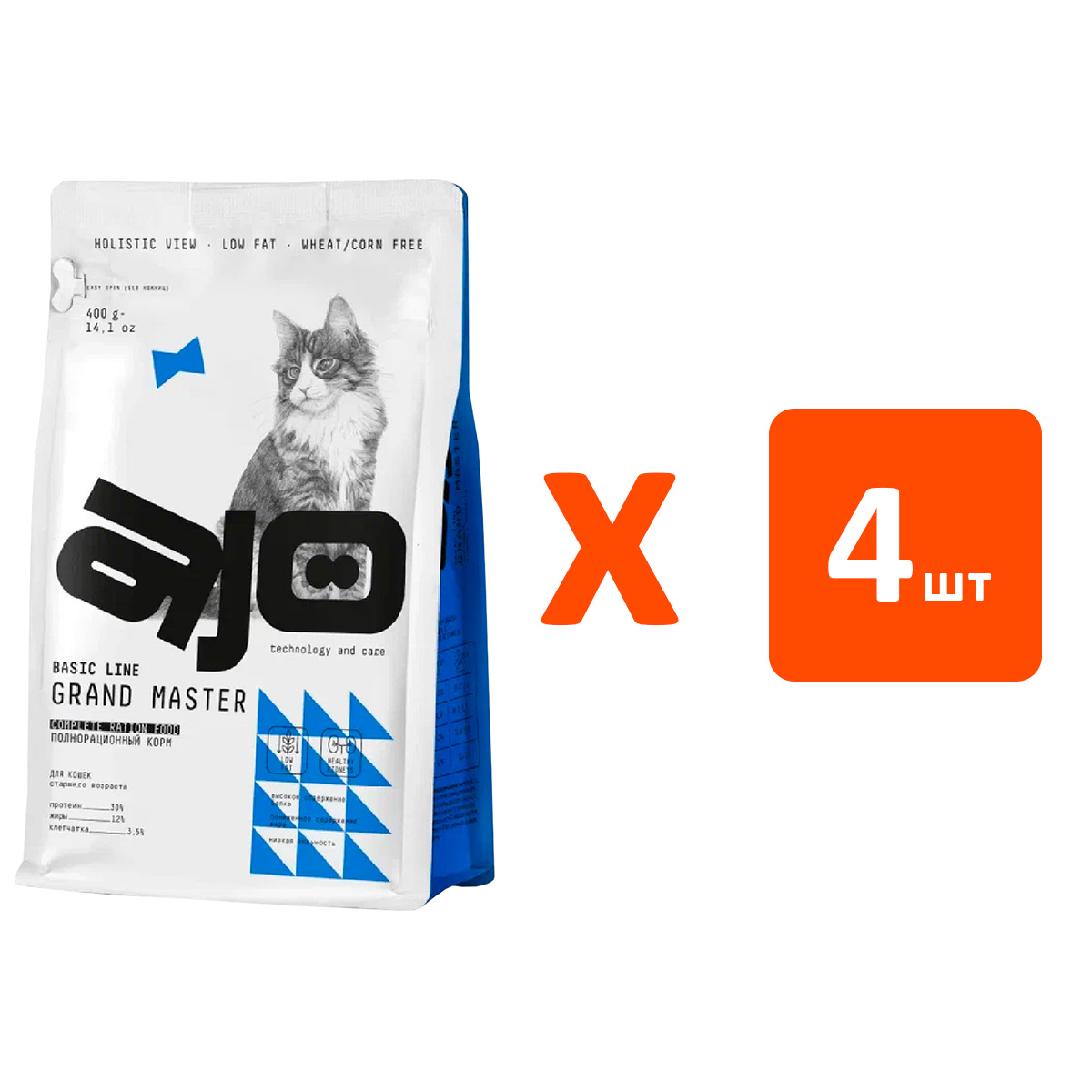 Сухой корм для пожилых кошек AJO CAT BASIC LINE GRAND MASTER курица (0,4 кг х 4 шт)
