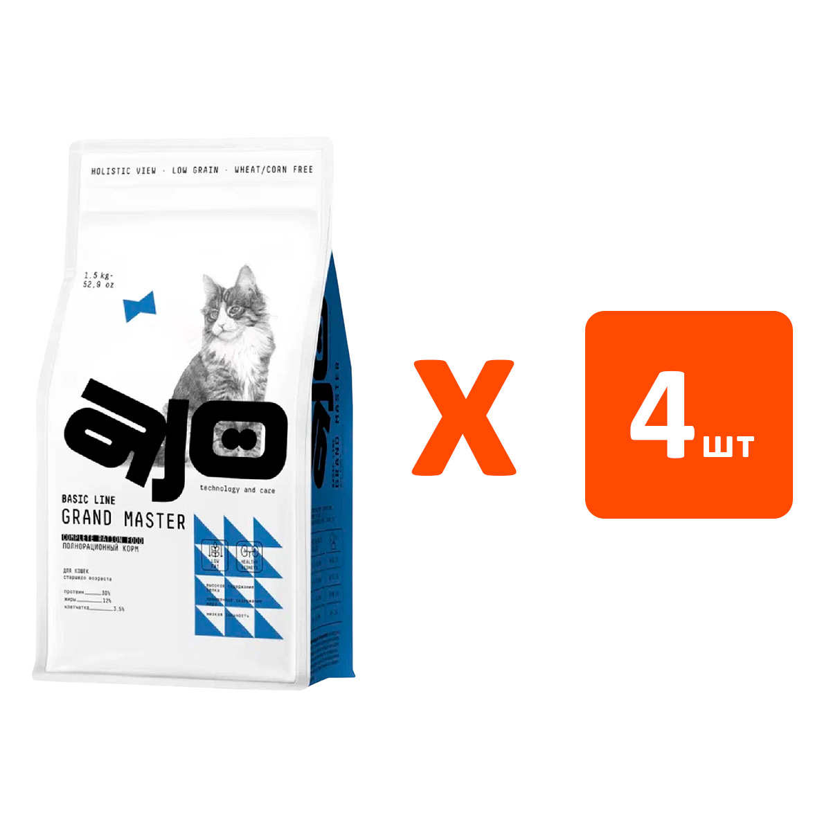 Сухой корм для пожилых кошек AJO CAT BASIC LINE GRAND MASTER курица (1,5 кг х 4 шт)