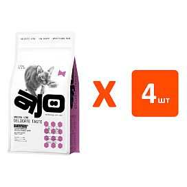 Сухой корм для привередливых кошек AJO CAT SPECIAL LINE DELICATE TASTE низкозерновой, индейка (1,5 кг х 4 шт)
