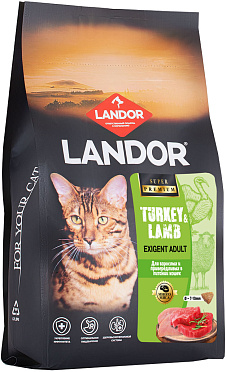 Сухой корм для привередливых кошек LANDOR ADULT EXIGENT индейка, ягненок (2 кг)