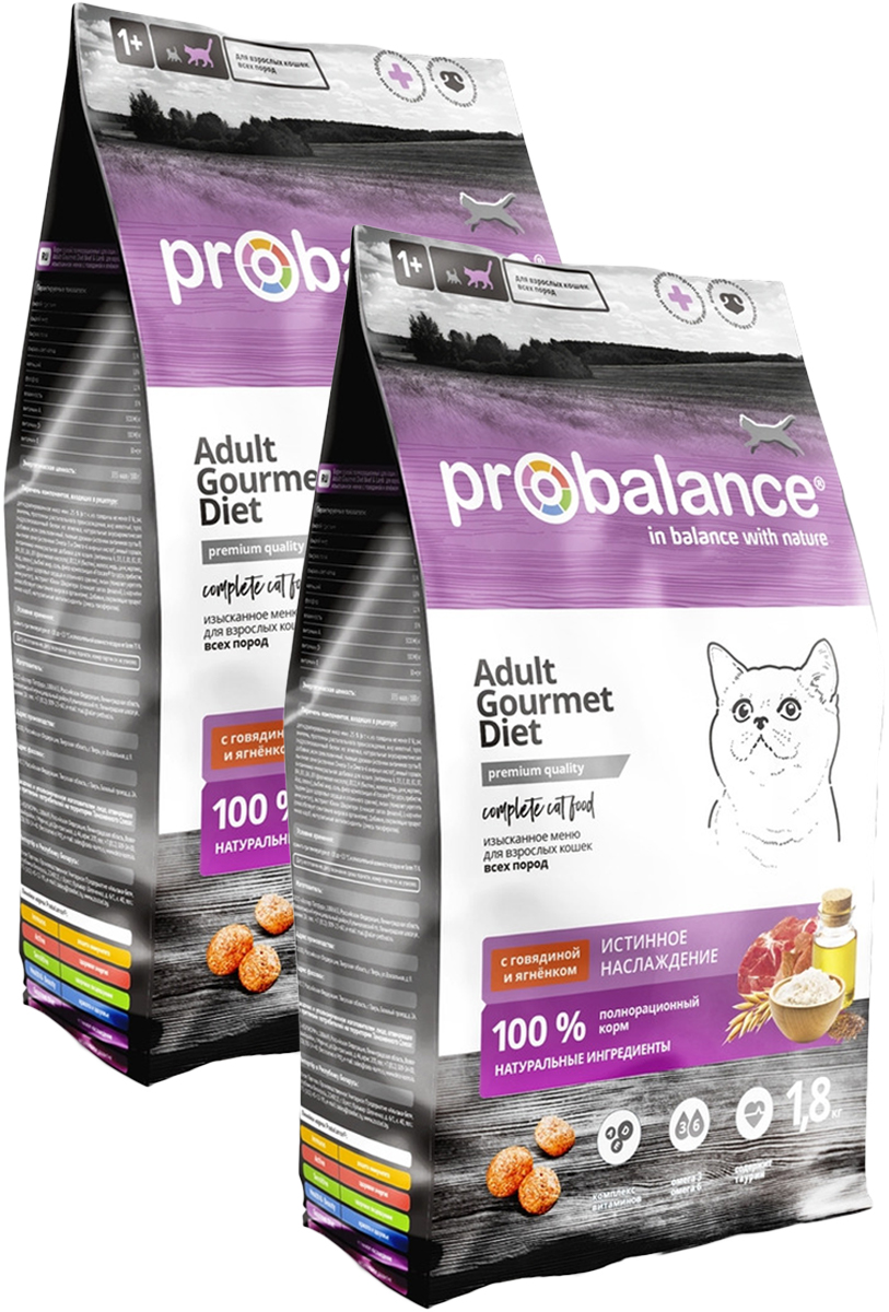 Сухой корм для привередливых кошек PROBALANCE GOURMET DIET говядина, ягненок (8 + 8 кг)