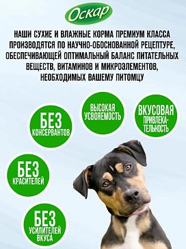 Корма ОСКАР не содержат искусственных красителей и консервантов, что особенно важно для обеспечения будущего Вашего питомца.