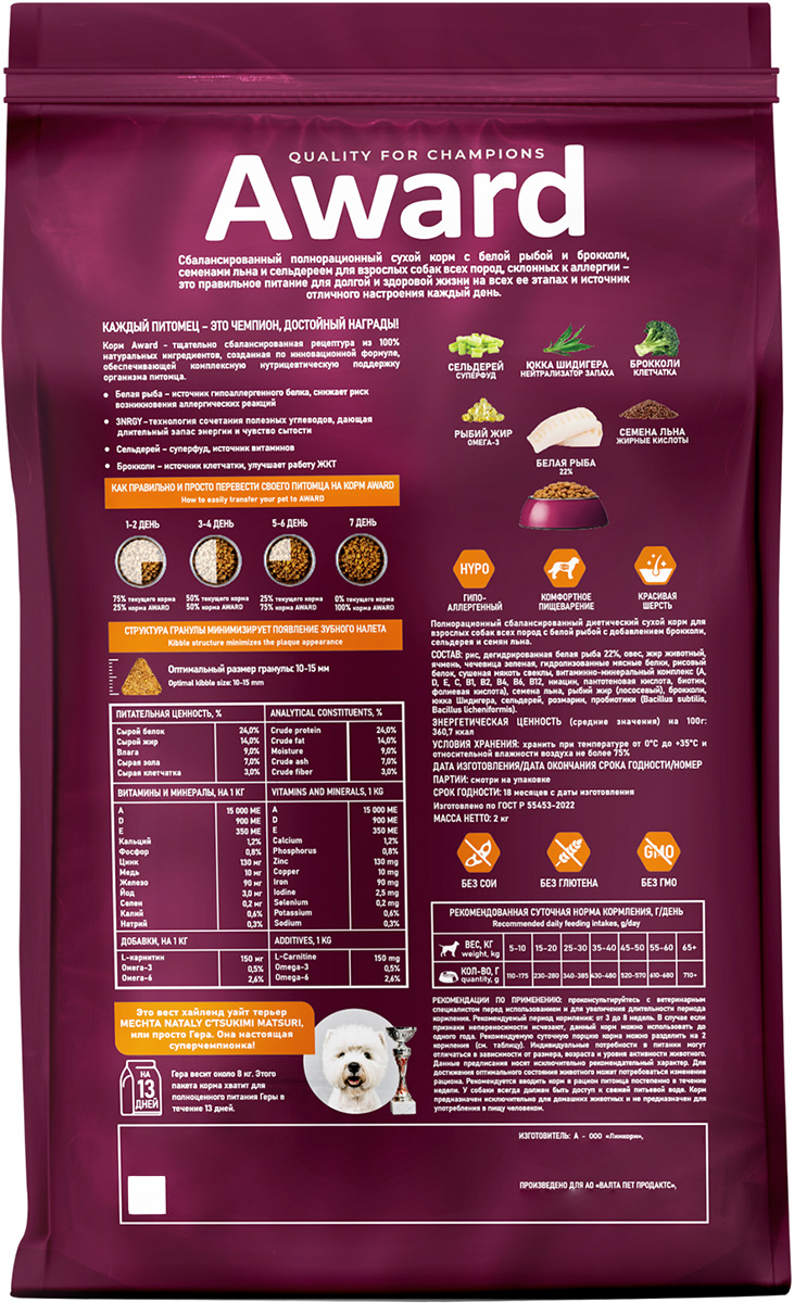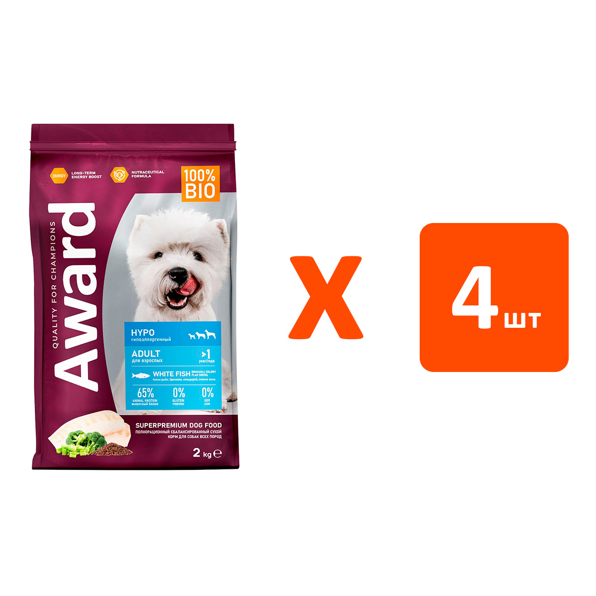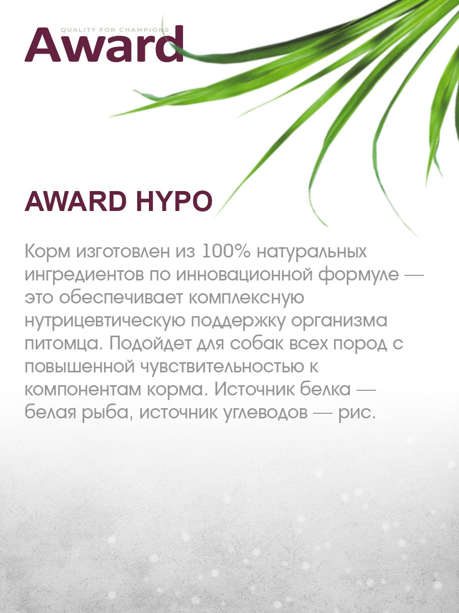 Сухой корм для собак AWARD HYPO гипоаллергенный белая рыба (2 кг х 4 шт)