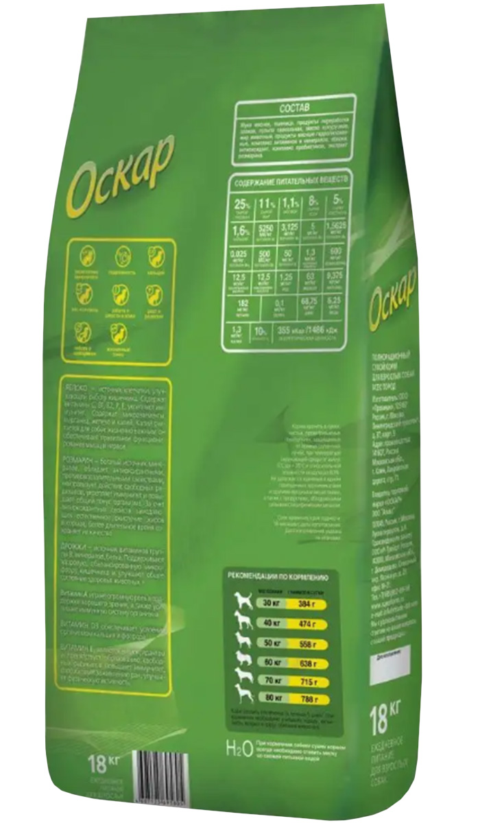 Высокоусваиваемый корм ОСКАР PROMO для собак всех пород производится по научно-обоснованной рецептуре, обеспечивающей оптимальный баланс питательных веществ, витаминов и микроэлементов, необходимых Вашему питомцу.