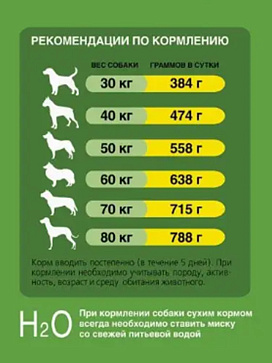Рекомендации по кормлению: см. таблицу на упаковке.