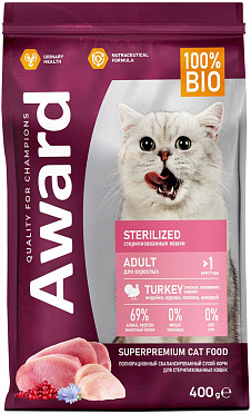 Сухой корм для стерилизованных кошек AWARD STERILIZED индейка, курица (0,4 кг)