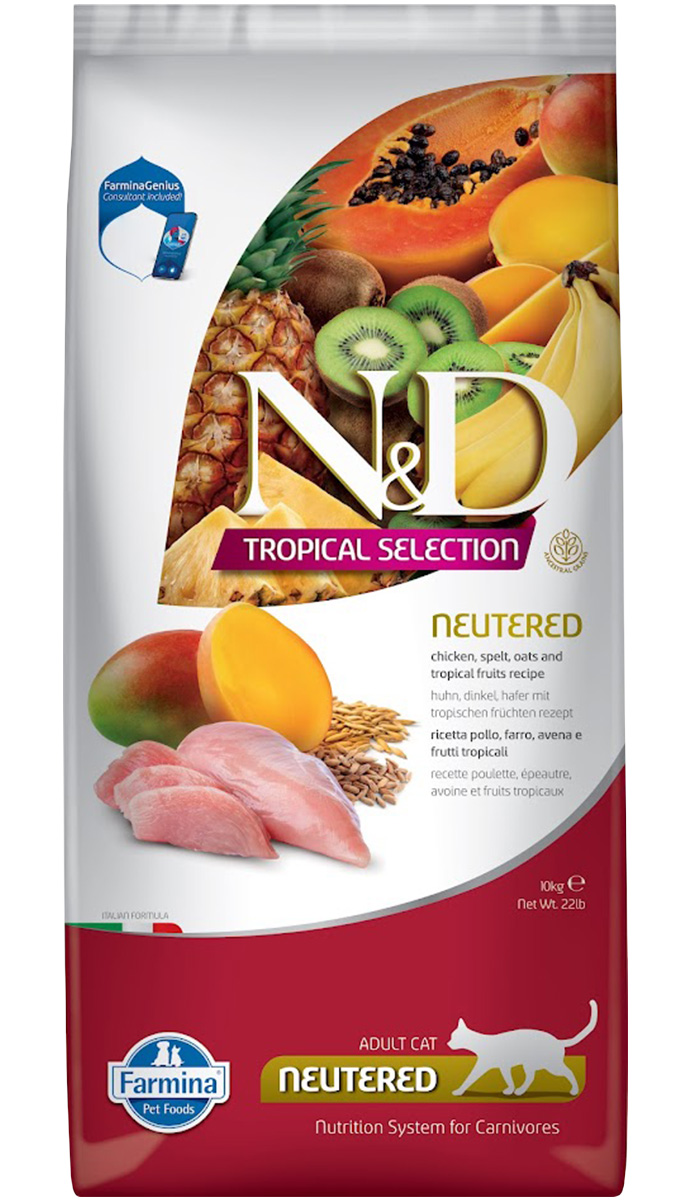 Сухой корм для стерилизованных кошек FARMINA N&D TROPICAL SELECTION NEUTERED CHICKEN низкозерновой курица, спельта, овес, тропические фрукты (10 кг)
