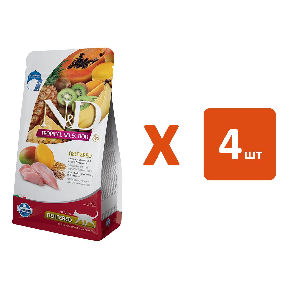 Сухой корм для стерилизованных кошек FARMINA N&D TROPICAL SELECTION NEUTERED CHICKEN низкозерновой курица, спельта, овес, тропические фрукты (1,5 кг х 4 шт)