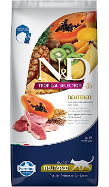 Сухой корм для стерилизованных кошек FARMINA N&D TROPICAL SELECTION NEUTERED LAMB низкозерновой ягненок, спельта, овес, тропические фрукты (10 кг)