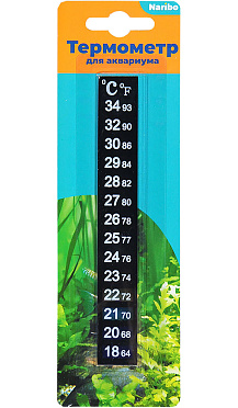Удобный термометр с двойной шкалой температуры (по Фаренгейту и Цельсию). Просто наклейте на чистую поверхность стекла с внешней стороны аквариума ниже уровня воды.