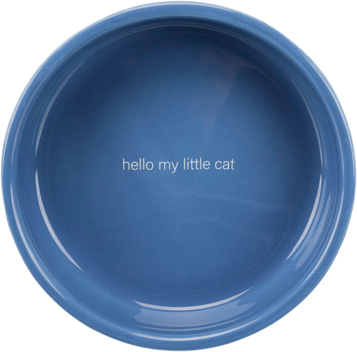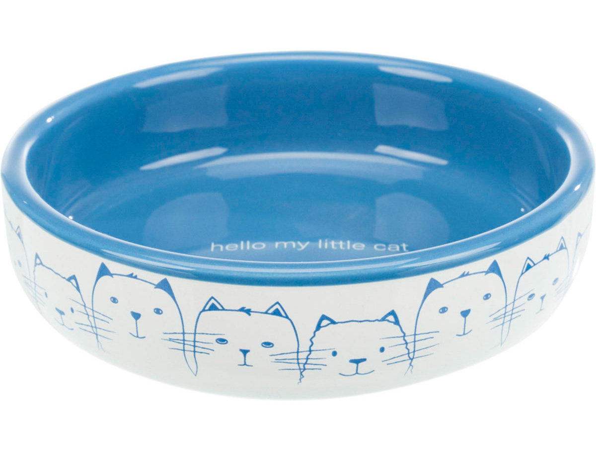 TRIXIE керамическая миска HELLO MY LITTLE CAT плоская голубая/белая 0,3 л (1 шт)