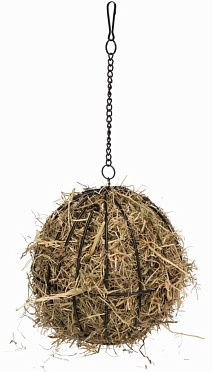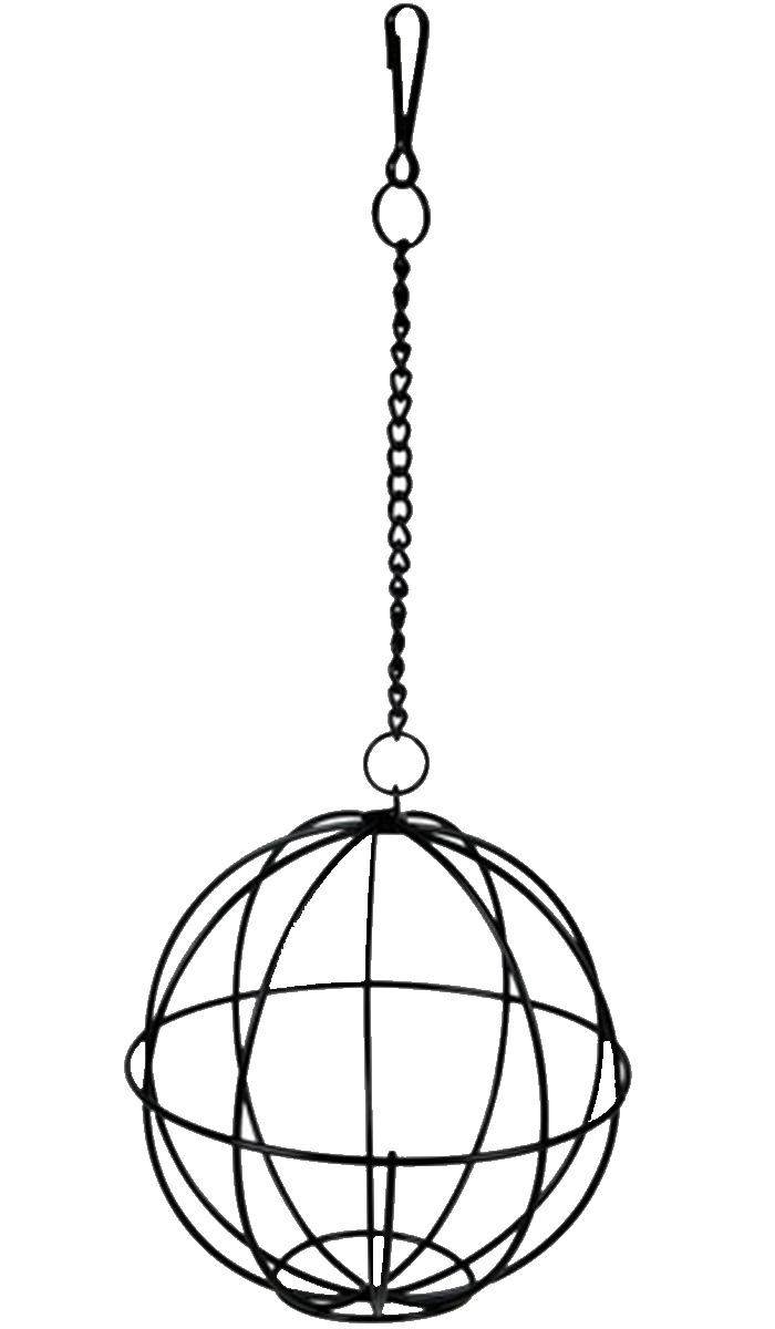 Диаметр – 12 см, максимальное расстояние между прутьями – 3,4 см. В этом шаре имеется специальное кольцо, чтобы животное не застряло.