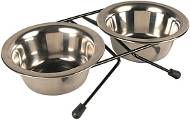 Набор мисок из нержавеющей стали TRIXIE обеспечит Вашему питомцу удобное комфортное и кормление, за счет оптимальной высоты подставки.