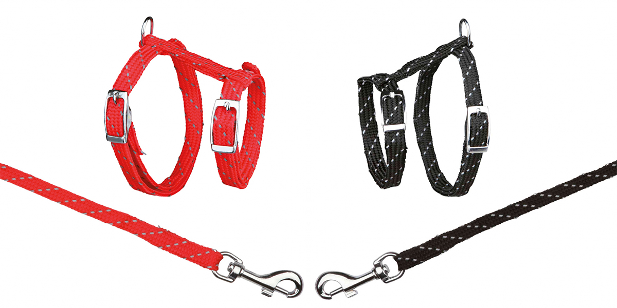 Удобная нейлоновая шлейка со вшитыми отражающими полосками с поводком для кошек.
