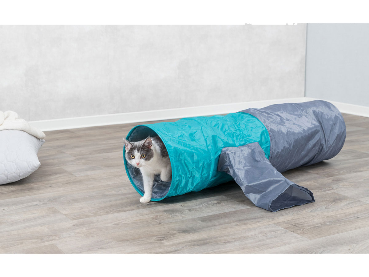 Тоннель с 4 отверстиями для кошек шуршащий производится фирмой Трикси, чтобы обеспечить веселый досуг любимому питомцу. Оригинальный дизайн идеально сочетает в себе место для активных игр и укромное затишье для сна. Изготавливается из шуршащего материала, который приводит в восторг домашнее животное. При загрязнении не предоставит особых неудобств, легко поддается очищению в стиральной машинке. Такой тоннель отлично подходит как для помещений, так и для улицы. Шуршащая пленка стимулирует Вашего питомца играть снова и снова!