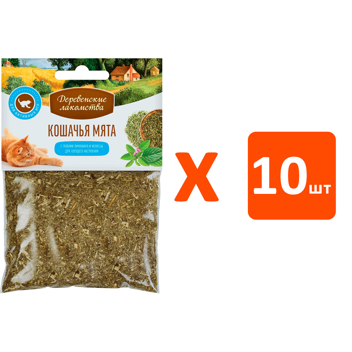тва для кошек ДЕРЕВЕНСКИЕ кошачья мята с травами лимонника и мелиссы (15 гр х 10 шт)