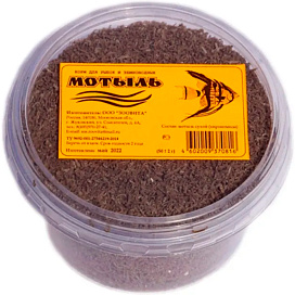 Для крупной рыбы сушеный мотыль следует перед дачей корма предварительно ошпарить кипятком и в таком виде давать в аквариум, мелкую рыбу можно кормить, как и сухой дафнией, предварительно растерев его.