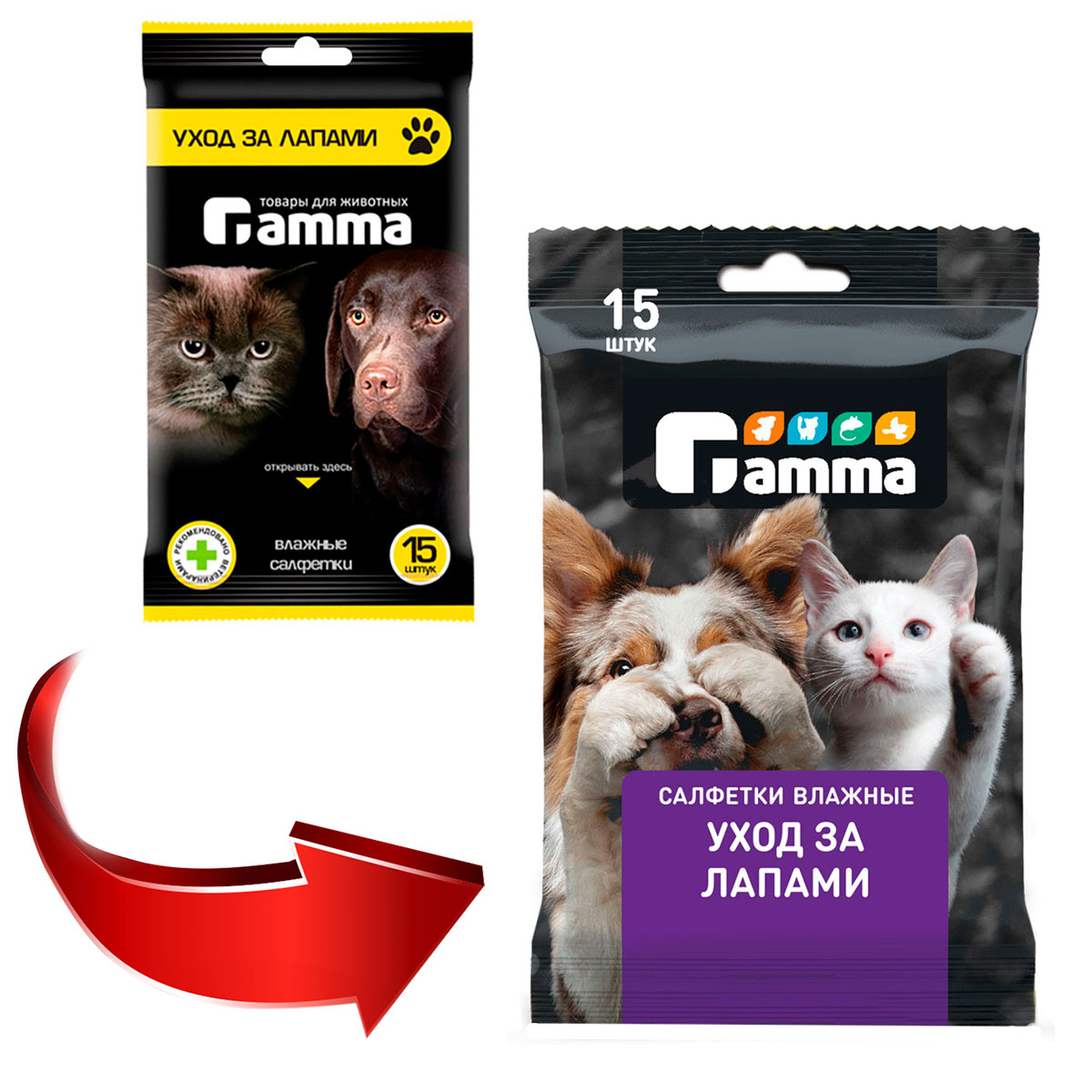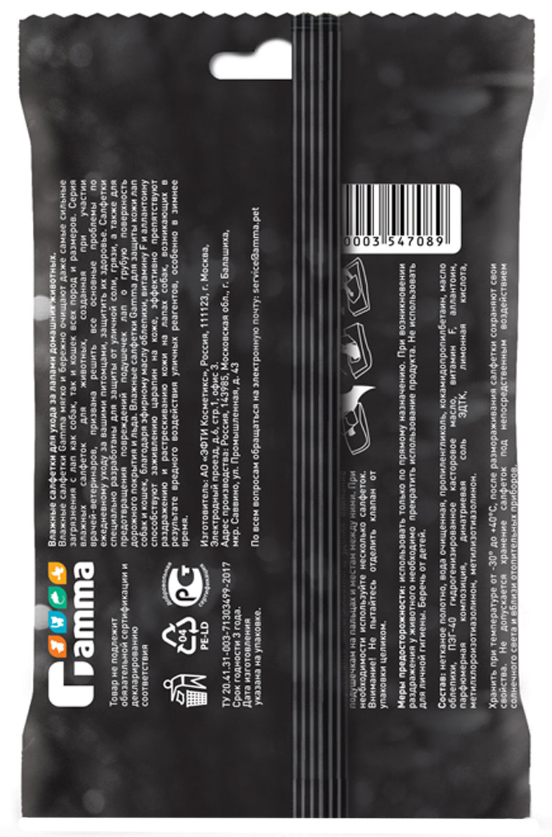 Влажные салфетки Gamma для ежедневного ухода за лапами.