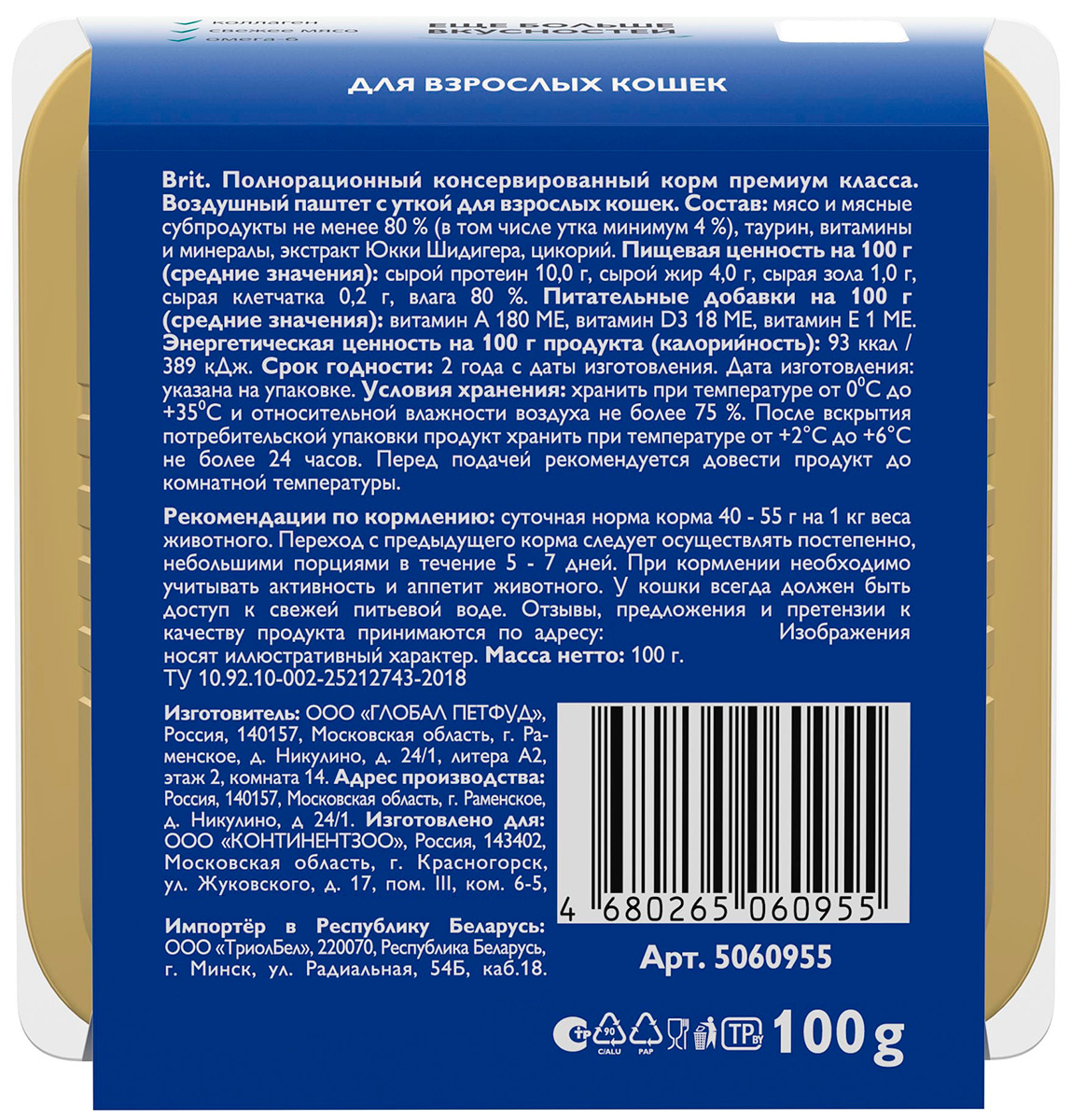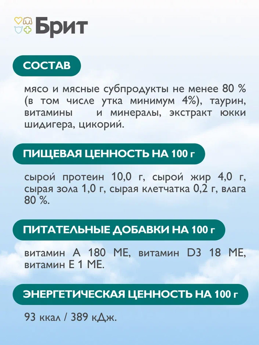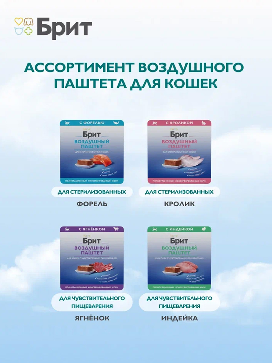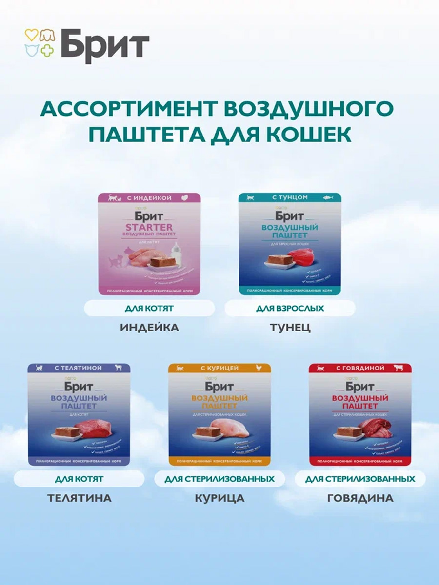 Воздушные паштеты Brit могут использоваться на постоянной основе для сбалансированного питания кошек и собак, так как содержат все необходимые для питомца питательные вещества, витамины и микроэлементы.