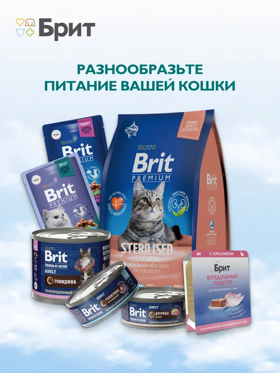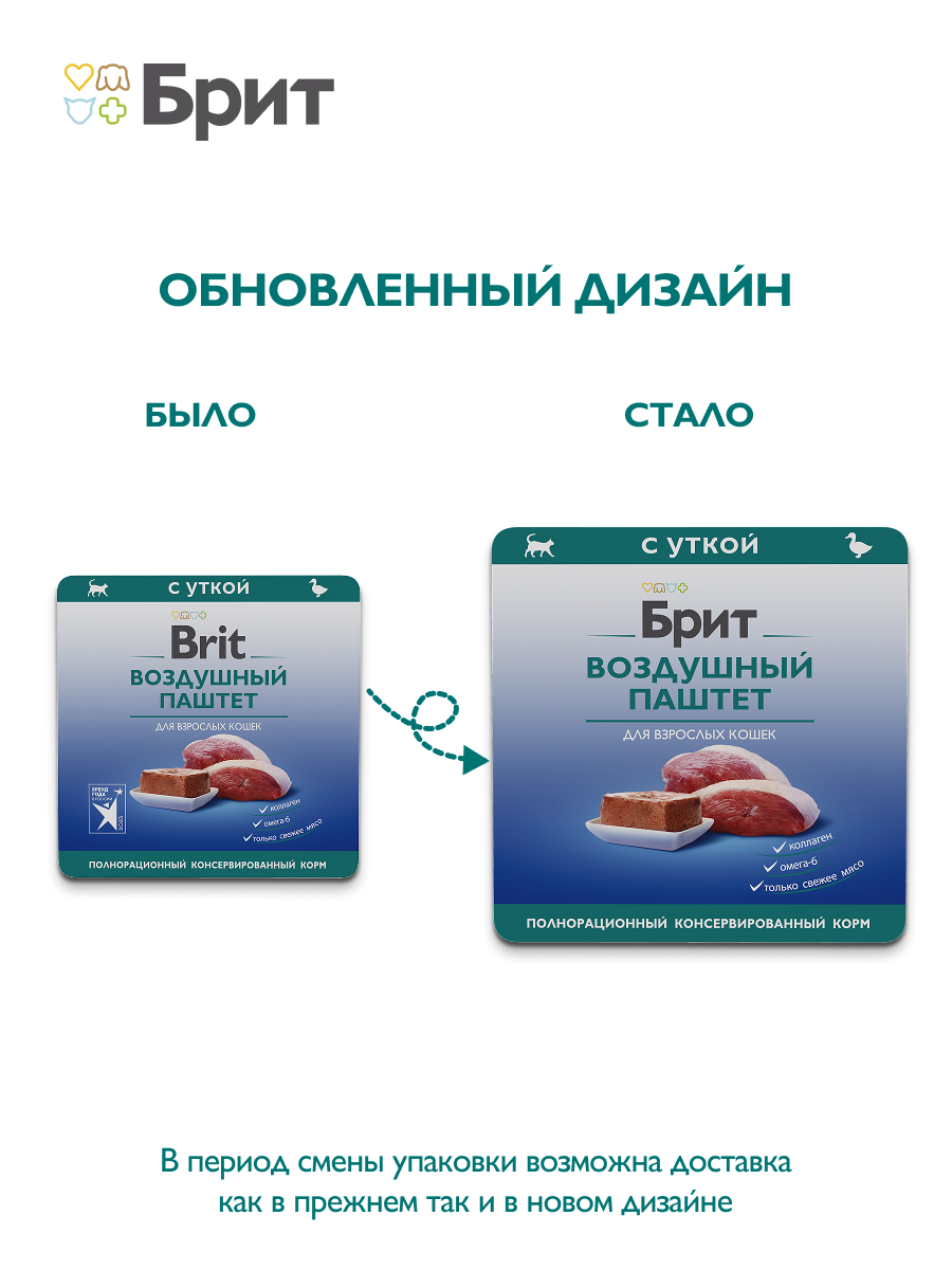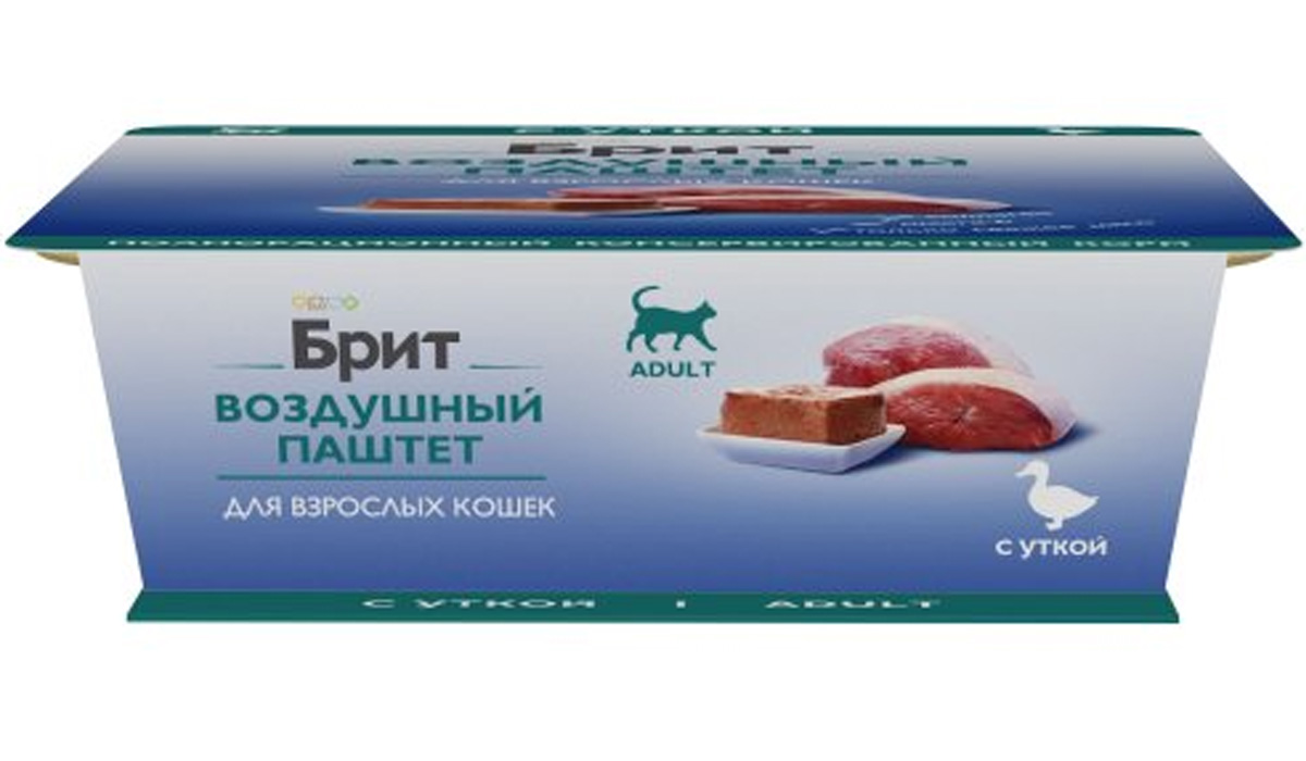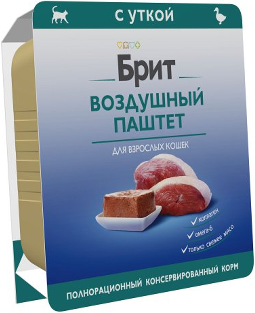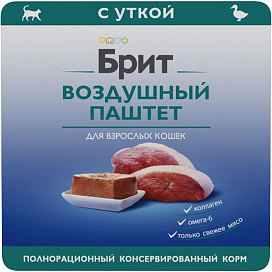 Полнорационный консервированный корм Брит премиум класса. Воздушный паштет с уткой для взрослых кошек.